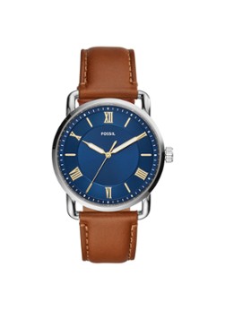 Deze 42 mm Fossil Copeland heeft een blauwe sunray-wijzerplaat met Romeinse cijfers en streepjes als indexen, een uurwerk met drie wijzers en een leren horlogeband. De Fossil Copeland combineert de elegantie en verfijning van een traditionele wijzerplaat met Romeinse cijfers met de casual styling van de kast en is ontworpen als een veelzijdige en praktische accessoire. Beschouwd als een terugkeer naar Fossil’s vintage-geïnspireerde roots, heeft Copeland een wijzerplaat met labelprint met cd-textuur en sunray-afwerking die onderscheidend en verfijnd is. Gekoppeld aan een klassieke leren band is dit horloge perfect voor elke gelegenheid. Het horloge is waterbestendig tot 5 ATM en is dus geschikt om mee te douchen. Fossil Laten we, vooruitkijkend, terugkijken naar dat onbevreesde, scrappy, grootmoedige, wilde visie, grote ogen, creatieve merk uit 1984 dat een merkwaardige deuk in de wereld maakte. Fossil maakt de meest authentieke, vintage-geïnspireerde, creatief geladen, mooie dingen voor interessante mensen (met super goede smaak en ongelooflijk hoge standaarden) die Fossil verwanten noemt. Fossil is altijd een creatief, samenwerkend bedrijf geweest, geïnspireerd door alles wat nieuwsgierig is. De passie van Fossil is wat hun nieuwsgierigheid drijft van hun begin als een klein horlogebedrijf tot een sterk internationaal merk voor lifestyle-accessoires.
