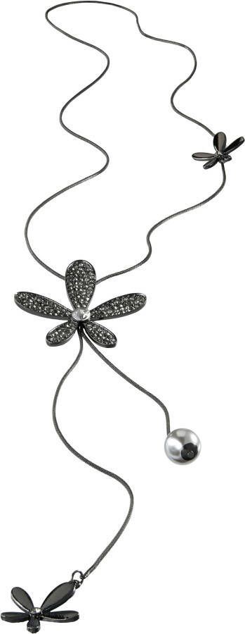 Ketting In speelse uitvoering, met bloemenapplicatie. Van hoogwaardig metaal, met glassteentjes en acrylkralen. Lengte ca. 72 cm. Hanger ca. 12 cm.