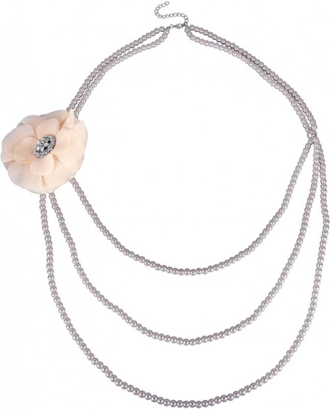 Deze sieradenset bestaat uit een hanger met ketting van bijzondere klasse. Deze hanger met ketting is versierd met synthetische parel. Van metaal, gerodineerd.