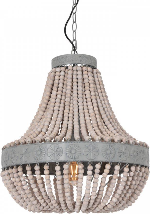Light & Living Luna kroonluchter met houten kralen ø50 cm gestempeld wit.