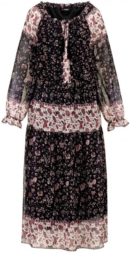 Bent u op zoek naar een vrouwelijke jurk? Met dit model van MIAMODA bent u altijd goed gekleed. De bloemenprint is bijzonder opvallend. Lange mouwen. De mouwzomen zijn elastisch. Hij is gemaakt van onderhoudsvriendelijke, ondoorzichtige kunstvezels en chiffon. De stijl van uw jurk kunt u in uw sieraden terug laten komen. Een groot kleurrijk collier zorgt bijvoorbeeld voor een opvallende look, terwijl een kleine ketting met een fonkelend steentje voor een subtiel elegant accent zorgt.